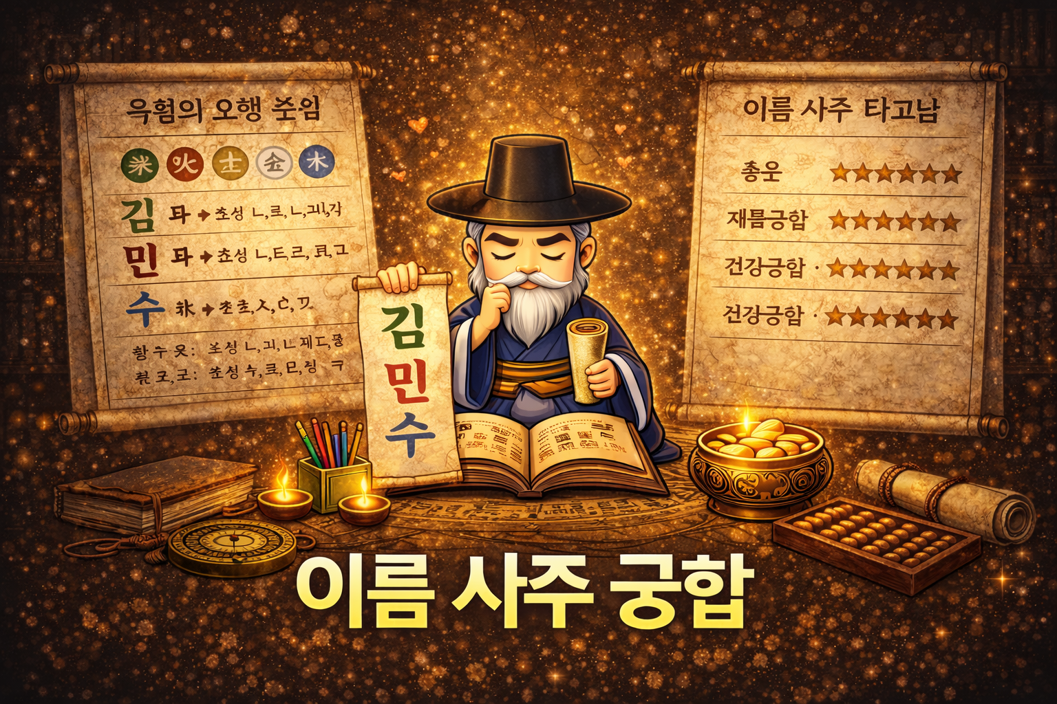 이름의 오행 구조와 사주 명식의 오행 흐름이 얼마나 자연스럽게 맞물리는지 점수와 해설로 제공합니다.