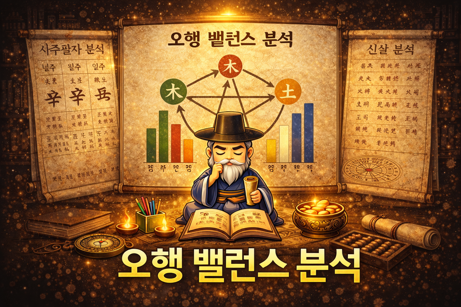 균형은 항상 “모든 오행이 똑같이 많아야 한다”는 뜻이 아닙니다. 사람마다 강점이 다른 것처럼, 오행도 특정 요소가 강할 때 장점이 분명해지지만 동시에 과열되는 지점(피로, 급함, 과몰입, 완벽주의 등)도 함께 나타날 수 있습니다. 오행 밸런스는 바로 그 장점의 사용 방식과 부작용이 생기는 조건을 점검하는 용도로 활용하시면 좋습니다.